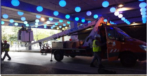 installation de boules LED interactives dont la couleur varie en fonction des capteurs sonores détectant le niveau de bruit ambiant