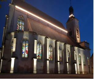 Mise en valeur de l’église Saint Médard du vieux pays à Tremblay en France à l’aide d’encastrer au Sol avec un système RGBW